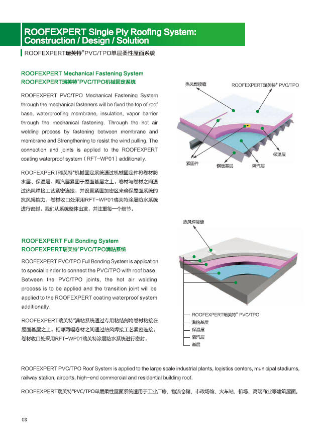 ROOFEXPERT瑞芙特®PVC/TPO单层柔性屋面系统